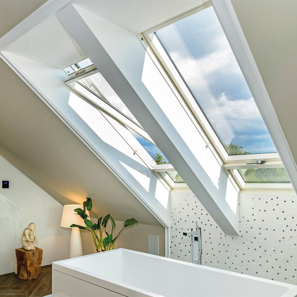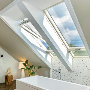 The FAKRO FTU-V Z‑Wave Roof Window combines smart technology, energy efficiency, and modern design in one seamless unit. Its centre pivot operation allows smooth opening in multiple positions, providing excellent ventilation and effortless cleaning with a sash that rotates up to 180°. Positioned at the top of the frame, the integrated air inlet increases the glazed surface area by 6%, maximising natural daylight throughout your living space.